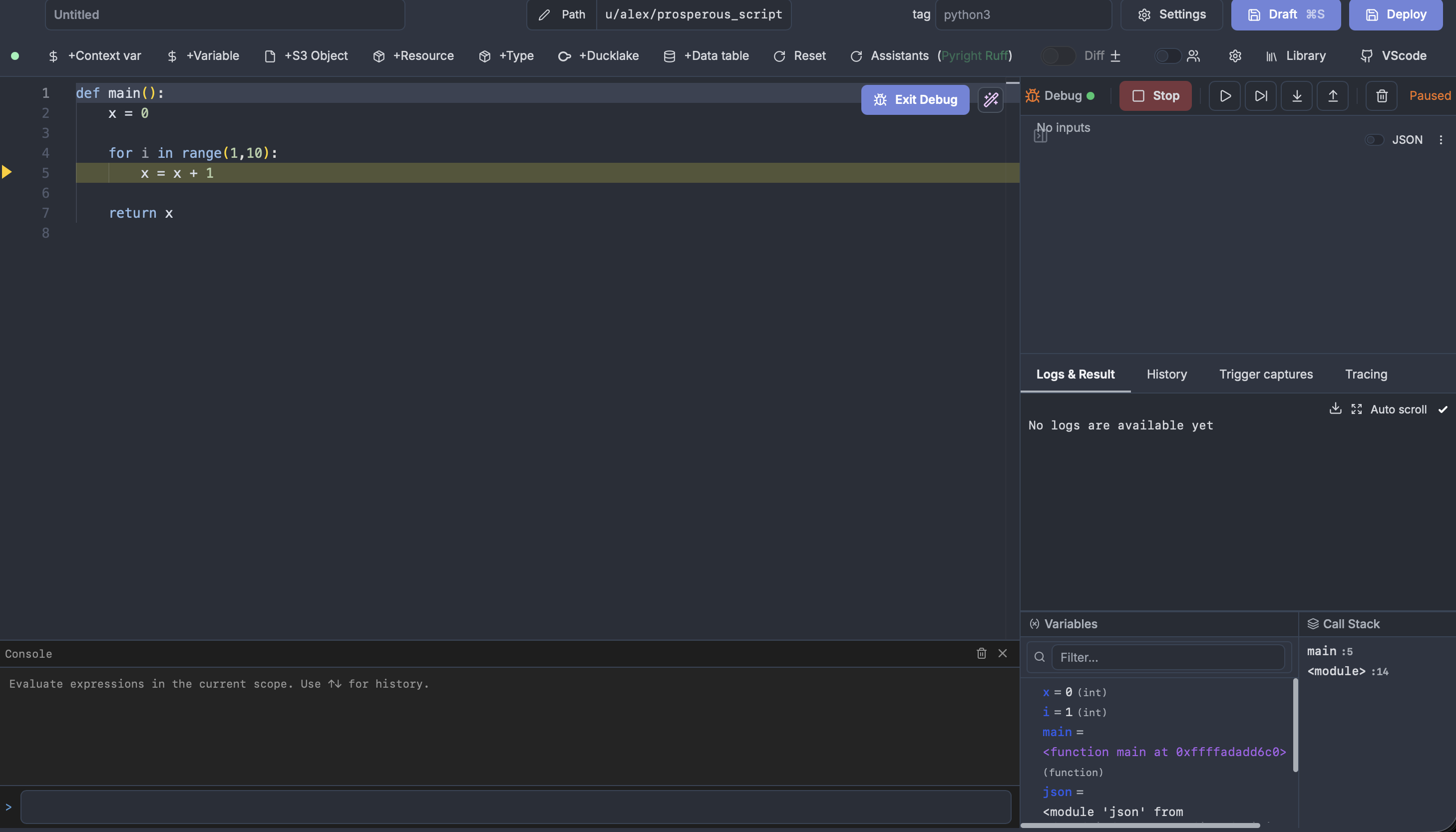- Interactive script debugger