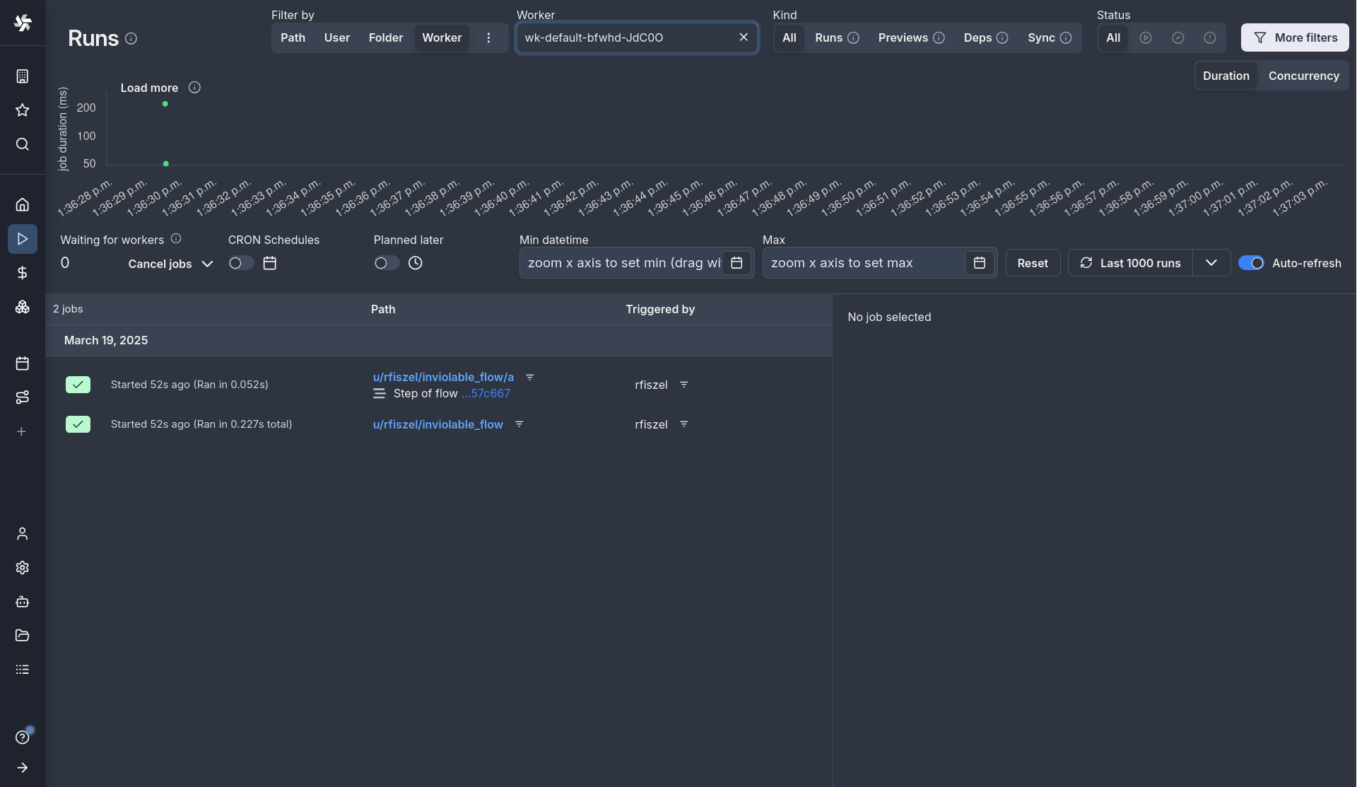 Now the db only stores at most 5Kb of logs per job rows, reducing the pressure on it by order of magnitudes, while users can now run jobs with unlimited logs with minimal impact on the worker or db. And the logs are still as live as before