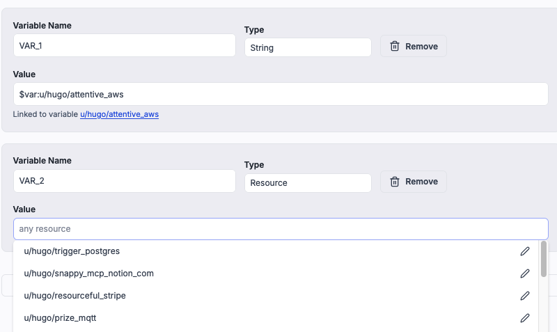 - Variables and resources in flow env