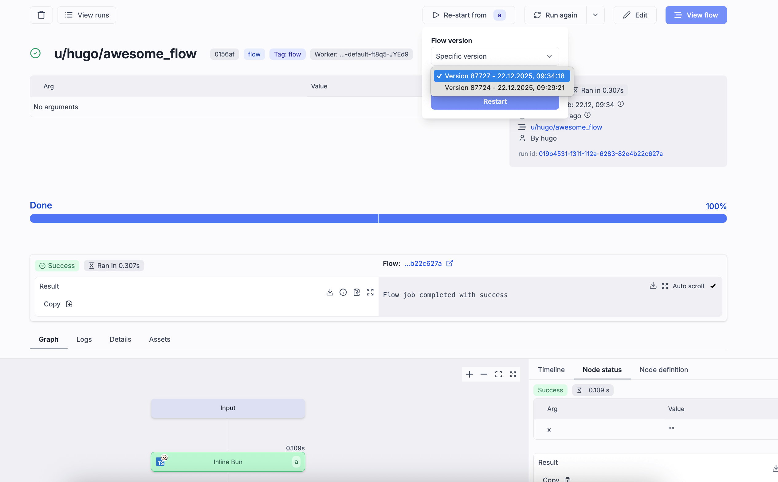 - Results (pass/fail/running) shown on script and flow detail pages