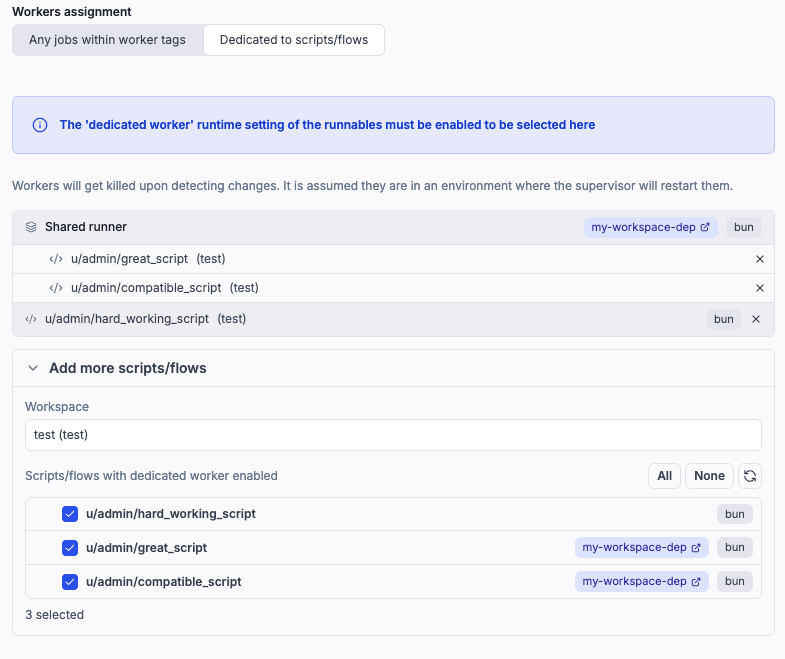 - Shared runners for dedicated workers